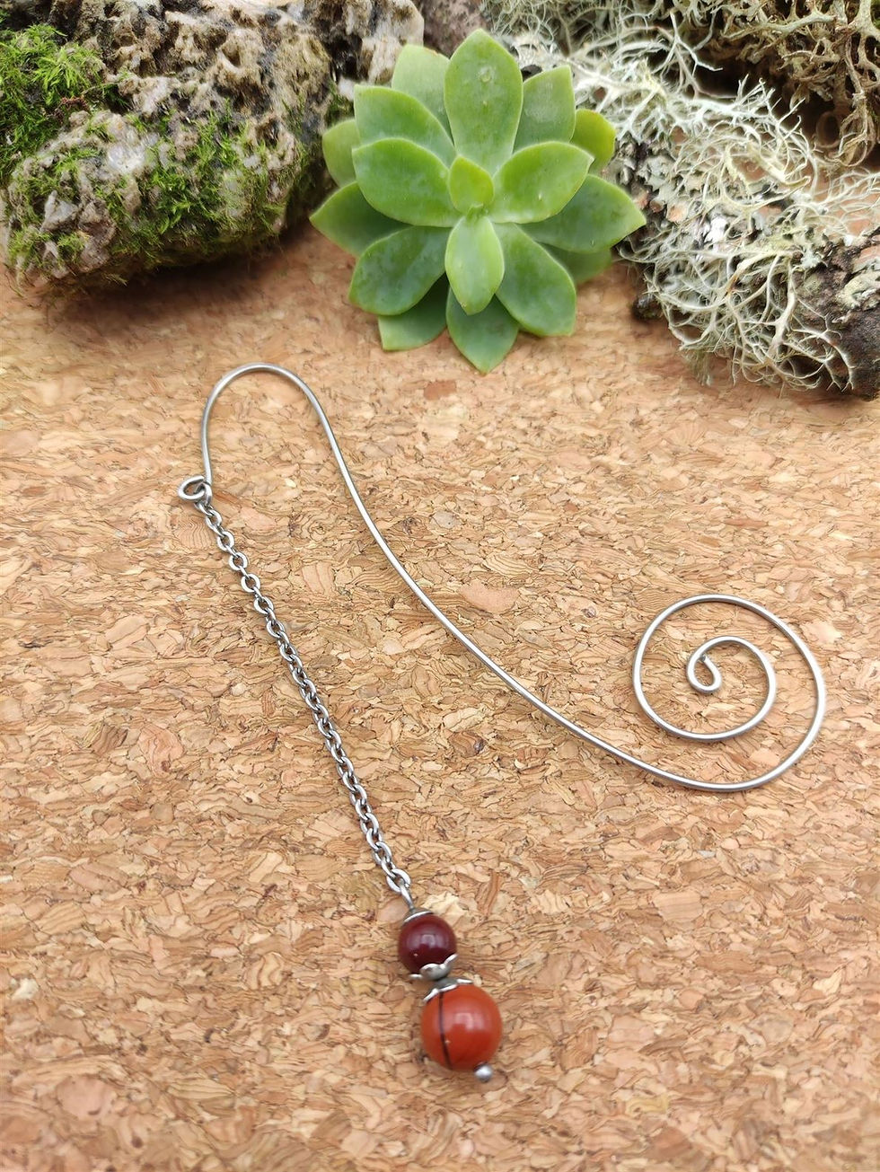 Découvrez l'élégance inégalée de nos marque-pages en acier inoxydable, confectionnés artisanalement en France et agrémentés de pierres semi-précieuses. Chaque création est une pièce unique, un bijou exquis harmonisant sophistication et raffinement.